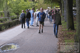 Auch am Alsterufer (Veloroute 4) ist eine deutlichere Trennung zwischen Rad- und Fußgängerverkehr erforderlich. Dort kommen sich Radfahrer und Fußgänger regelmäßig ins Gehege. Bislang jedoch ist die CDU gegen eine Verlegung des Radwegs vom Ufer weg, um dort auch mehr Platz für Fußgänger und Jogger einzurichten.![]() |